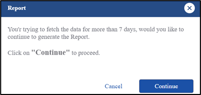 If the user selects a date range of more than 7 days, they will be asked to Generate Reports and view the data. Using Generated Reports, user can view detailed reports of data consumption in CSV & xlsx formats. Refer to section Generate Report for more information.