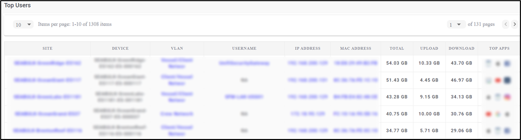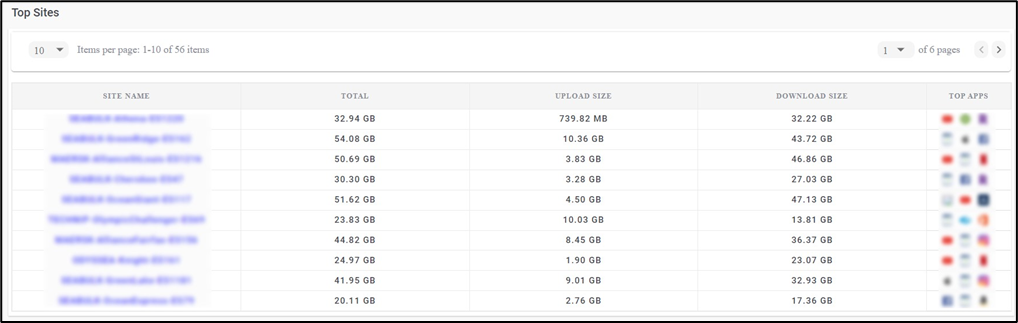 Top Apps – The top 3 applications that consumed the maximum amount of data in that site.