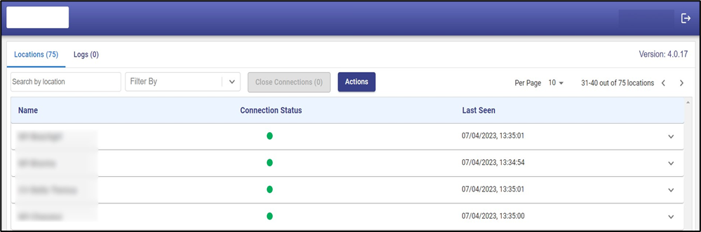 Filter by field is used to filter the sites under the Location tab based on their Connection Status. The options available are: