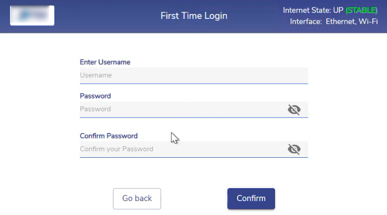 To create the password, click the First time Login button when logging in for the first time. The Password creation screen opens.