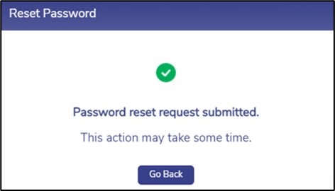 The below pop-up is displayed on sending successful reset request.