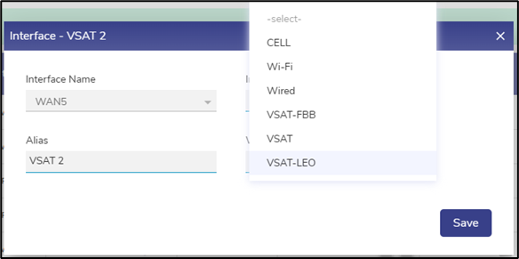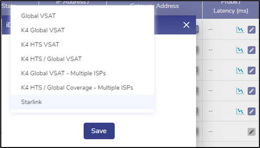 Select VSAT Type to manage as Starlink and Save. The window will close.