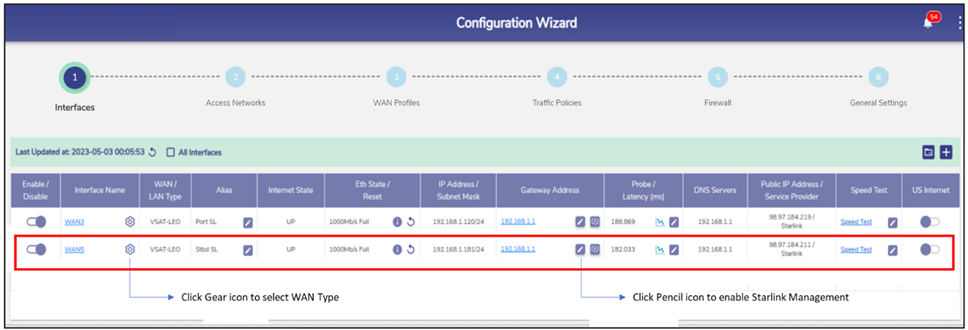 For the Ethernet interface used by Starlink (e.g., WAN5)