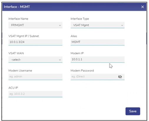 Select the Interface Type as VSAT Mgmt from the dropdown menu.